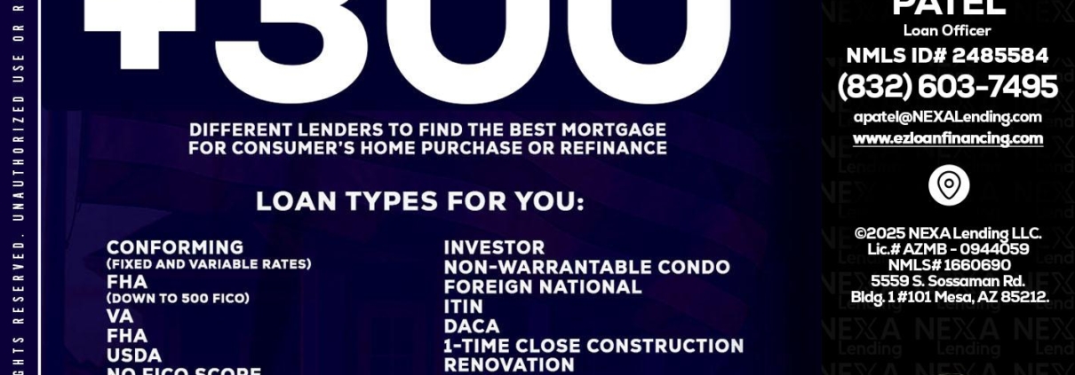 Hi, my name is Ashish Patel. I’m a Loan Officer with NEXA Lending LLC., offering personalized mortgage solutions, fast customized quotes, great rates and service with integrity.