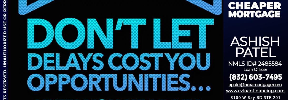 Hi, my name is Ashish Patel. I’m a Loan Officer with NEXA Mortgage LLC., offering personalized mortgage solutions, fast customized quotes, great rates and service with integrity.