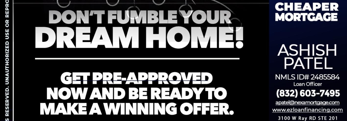 DONT FUMBLE - Ashish Patel -Loan OfficerHi, my name is Ashish Patel. I’m a Loan Officer with NEXA Mortgage LLC., offering personalized mortgage solutions, fast customized quotes, great rates and service with integrity.