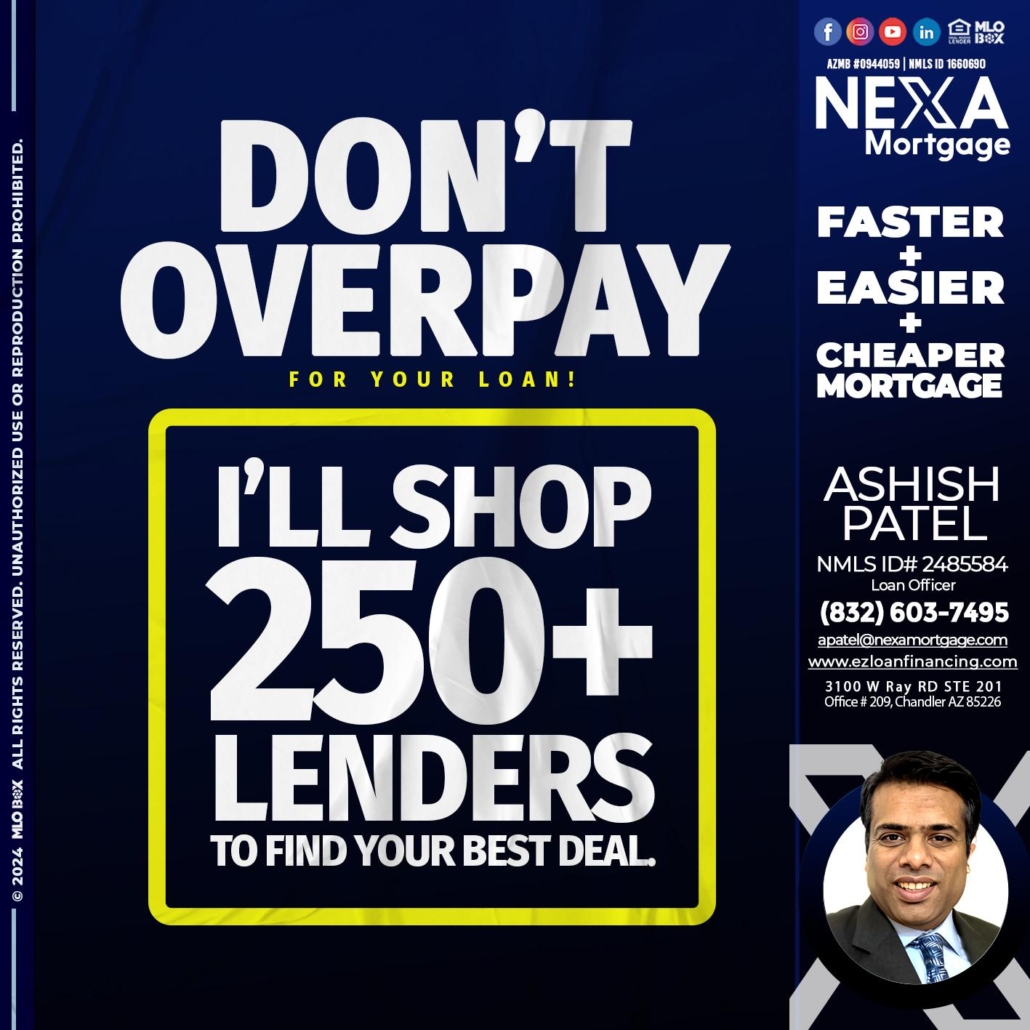 dont overpay - Ashish Patel -Loan OfficerHi, my name is Ashish Patel. I’m a Loan Officer with NEXA Mortgage LLC., offering personalized mortgage solutions, fast customized quotes, great rates and service with integrity.