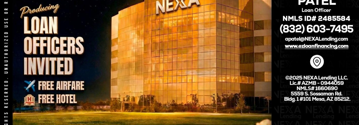 Hi, my name is Ashish Patel. I’m a Loan Officer with NEXA Lending LLC., offering personalized mortgage solutions, fast customized quotes, great rates and service with integrity.