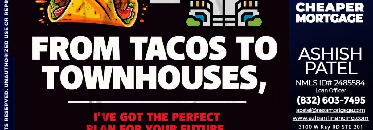 from tacos to - Ashish Patel -Loan OfficerHi, my name is Ashish Patel. I’m a Loan Officer with NEXA Mortgage LLC., offering personalized mortgage solutions, fast customized quotes, great rates and service with integrity.