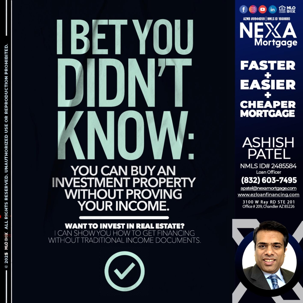 Hi, my name is Ashish Patel. I’m a Loan Officer with NEXA Mortgage LLC., offering personalized mortgage solutions, fast customized quotes, great rates and service with integrity.