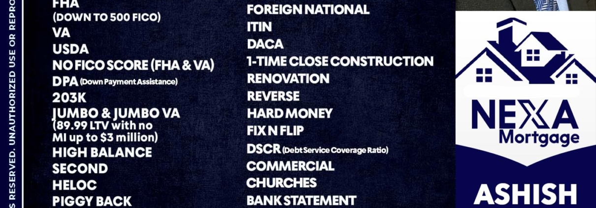 Hi, my name is Ashish Patel. I’m a Loan Officer with NEXA Mortgage LLC., offering personalized mortgage solutions, fast customized quotes, great rates and service with integrity.