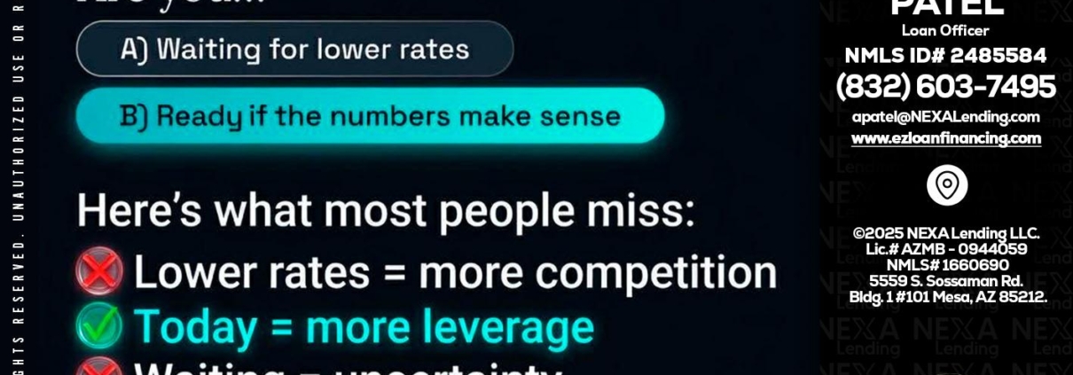 Hi, my name is Ashish Patel. I’m a Loan Officer with NEXA Lending LLC., offering personalized mortgage solutions, fast customized quotes, great rates and service with integrity.
