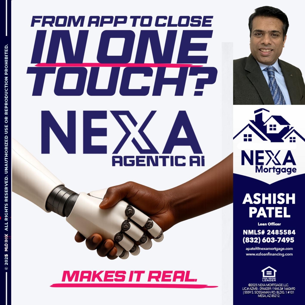 Hi, my name is Ashish Patel. I’m a Loan Officer with NEXA Mortgage LLC., offering personalized mortgage solutions, fast customized quotes, great rates and service with integrity.
