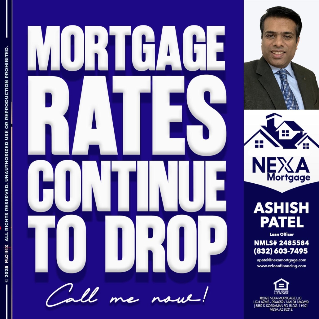 MORTGAGE RATES ARE DROP - Ashish Patel -Loan OfficerHi, my name is Ashish Patel. I’m a Loan Officer with NEXA Mortgage LLC., offering personalized mortgage solutions, fast customized quotes, great rates and service with integrity.