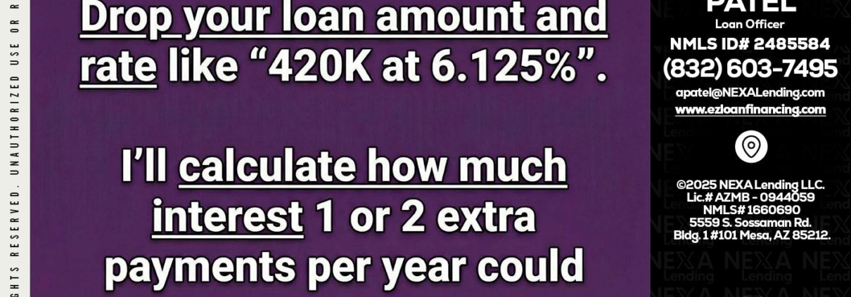 Hi, my name is Ashish Patel. I’m a Loan Officer with NEXA Lending LLC., offering personalized mortgage solutions, fast customized quotes, great rates and service with integrity.