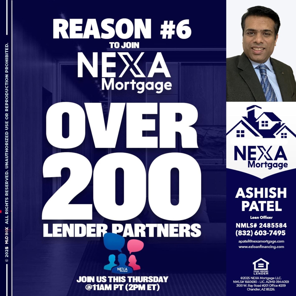 Hi, my name is Ashish Patel. I’m a Loan Officer with NEXA Mortgage LLC., offering personalized mortgage solutions, fast customized quotes, great rates and service with integrity.