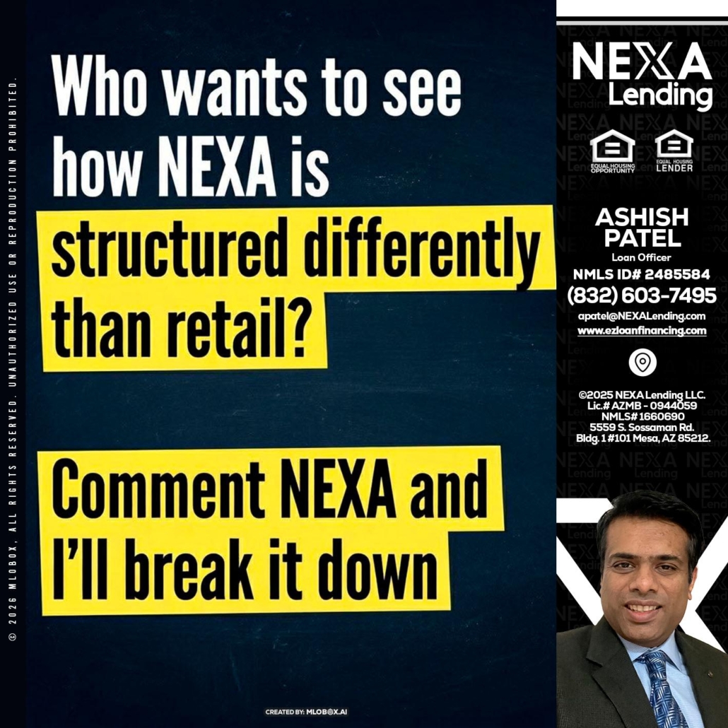 Hi, my name is Ashish Patel. I’m a Loan Officer with NEXA Lending LLC., offering personalized mortgage solutions, fast customized quotes, great rates and service with integrity.
