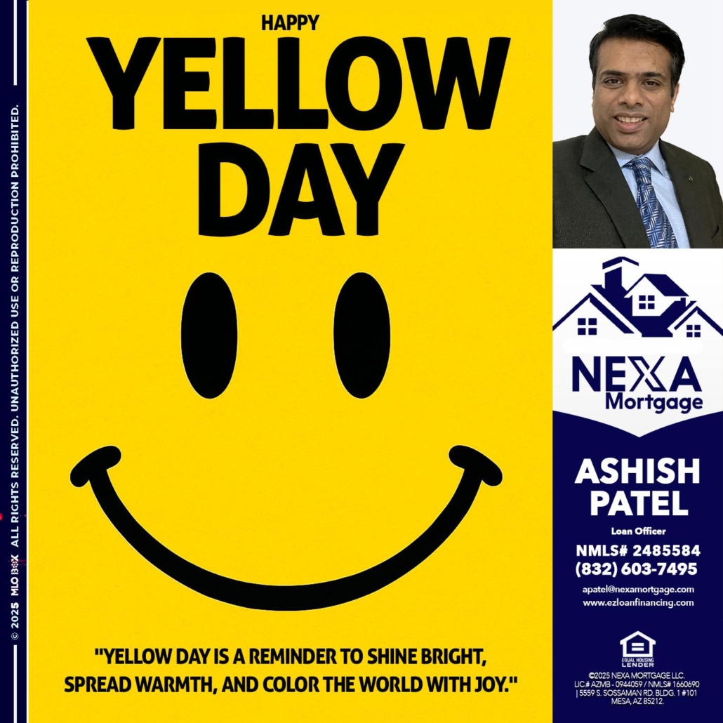 YELLOW DAY - Ashish Patel -Loan OfficerHi, my name is Ashish Patel. I’m a Loan Officer with NEXA Mortgage LLC., offering personalized mortgage solutions, fast customized quotes, great rates and service with integrity.