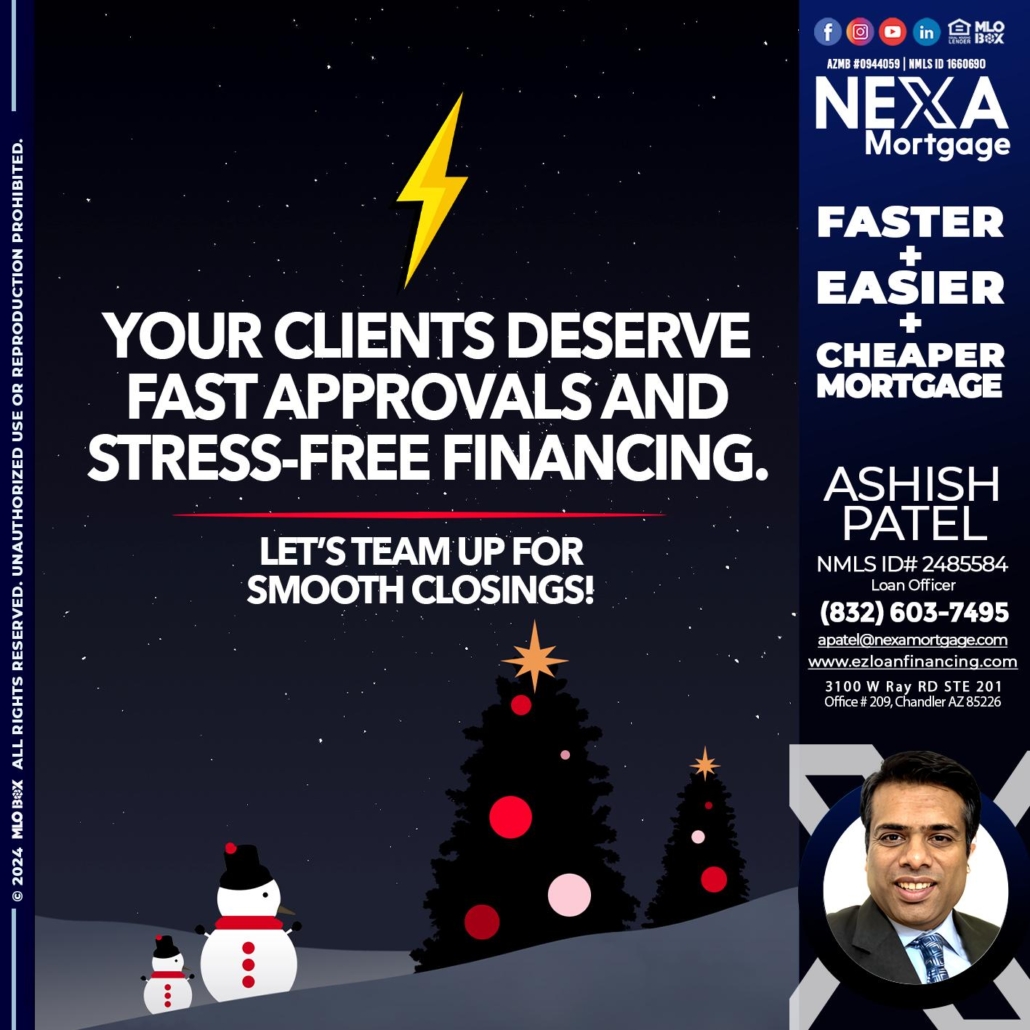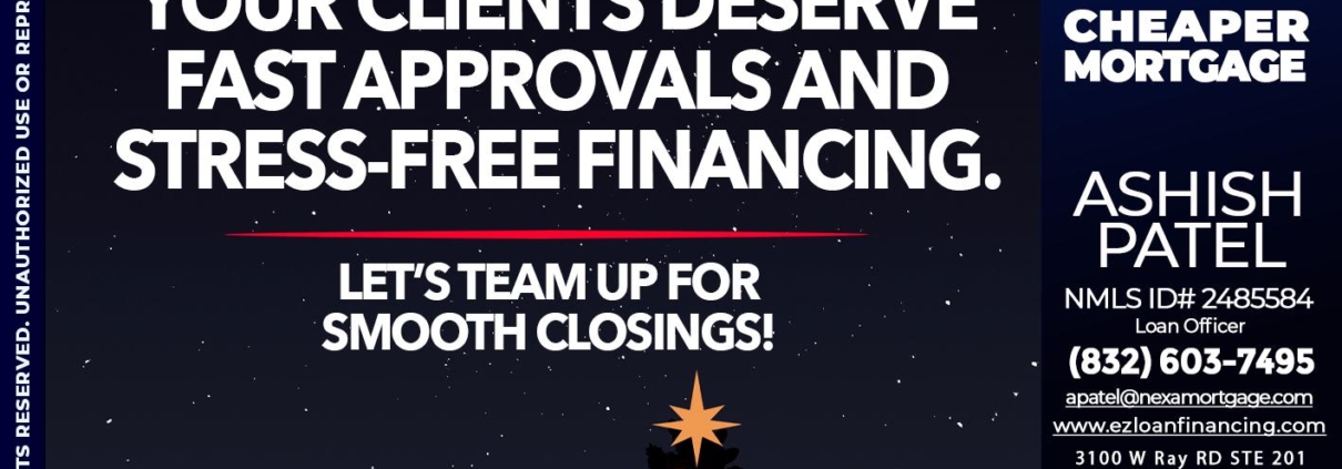 Hi, my name is Ashish Patel. I’m a Loan Officer with NEXA Mortgage LLC., offering personalized mortgage solutions, fast customized quotes, great rates and service with integrity.